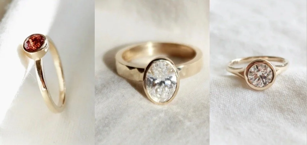 Guys! You wouldn’t believe how much I love to see bezels being adored. Bezels are FUN. They are fairly timeless, and they give durability to any ring that i think most people are after these days. No more diamonds falling out of your ring. No more wiggly prongs needing to be retipped. Bezels stick and they last.